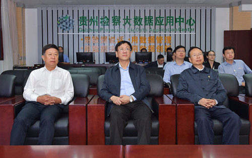 近年来,贵州省委积极推进大数据战略行动,注重发挥大数据的商用、民用和政用价值,努力打造“云上贵州”。贵州省检察院围绕省委部署,抓住全省大数据发展的历史机遇,积极探索“互联网+检察”工作新模式,取得了重要进展和较好效果。在贵州检察大数据应用中心,曹建明全面听取了省检察院大数据建设与应用情况,现场观摩了大数据司法办案辅助系统等平台演示。当了解到省院大数据中心已将各项检察工作“条数据”横向融合形成“块数据”,并探索实现与省高级法院、省监狱管理局信息系统互联互通后,曹建明表示肯定。他说,大数据要真正服务于司法办案、司法公开、服务群众、队伍管理监督、质量评查和领导决策等工作,必须全面集成、分析和运用各项数据,推动数据由“条”向“块”的实质转变,实现数据的“聚、通、用”;深度融合各类数据平台,尤其要积极推动和努力实现政法单位数据平台之间的互联互通,实现信息共享公用,共同形成促进司法公正、提升司法效率的强大合力和良性互动,进一步实现检察机关信息化转型升级,建设数据化、智能化检察机关。