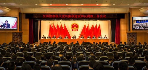 2月14日上午,全国检察机关党风廉政建设和反腐败工作会议在京举行。最高人民检察院党组书记、检察长曹建明出席会议并讲话。他强调,全国各级检察机关要全面贯彻落实党的十八届六中全会和十八届中央纪委七次全会精神,深入学习贯彻习近平总书记系列重要讲话精神,准确把握全面从严治党新内涵和新要求,保持战略定力和政治定力,坚持标本兼治,严肃党内政治生活,健全检察权运行监督体系,落实管党治党主体责任,自觉接受派驻监督,推动全面从严治检向纵深发展,以优异成绩迎接党的十九大胜利召开。