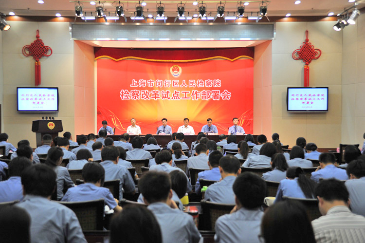 部署会上,闵行区检察院检察长潘祖全就推进改革试点工作向全体干警做了部署,指出此次检察改革工作以检察官专业职务序列改革为突破口,依法推进检察人员分类管理、完善司法责任制、健全检察人员职业保障、实行人财物统一管理5项具体改革试点,号召干警要不负重托,不辱使命,做好检察改革破冰探路的先行者。