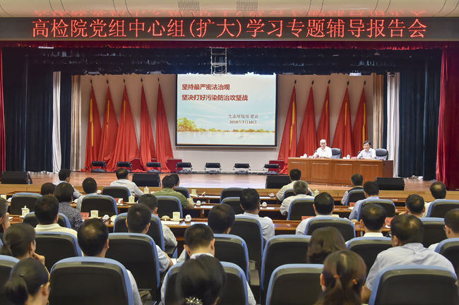 7月10日,最高人民检察院举行党组中心组(扩大)学习专题辅导报告会,党组书记、检察长张军主持报告会。生态环境部副部长翟青作专题报告。程丁?摄