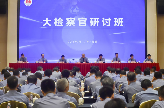 大检察官研讨班7月25日在广东深圳开班。最高人民检察院党组书记、检察长张军出席第一次全体会议并作重要讲话。他强调,全国各级检察机关要深入学习贯彻习近平新时代中国特色社会主义思想特别是政法思想,深入贯彻落实党的十九大精神,按照全面深化司法体制改革推进会部署,研究谋划新时代检察工作创新发展。