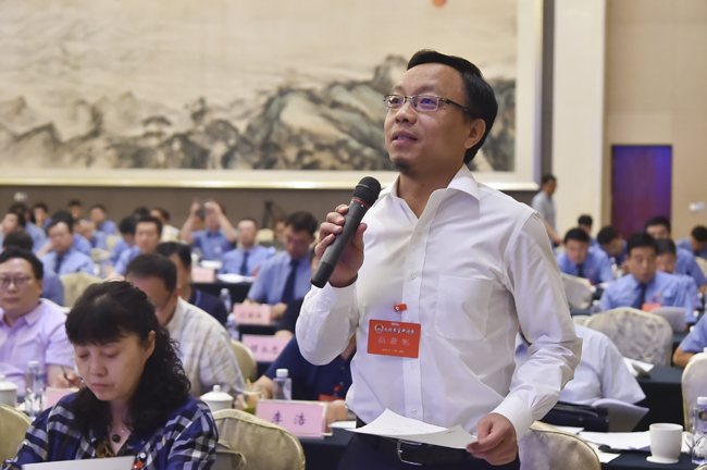 领导做大会交流发言,并与会议代表互动。程丁?摄