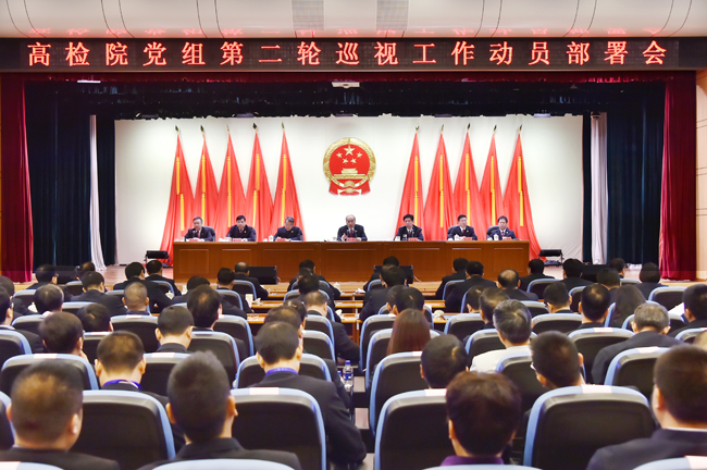 10月13日,最高检党组2018年第二轮巡视工作动员部署会举行,最高检党组书记、检察长张军出席并讲话。程丁?摄