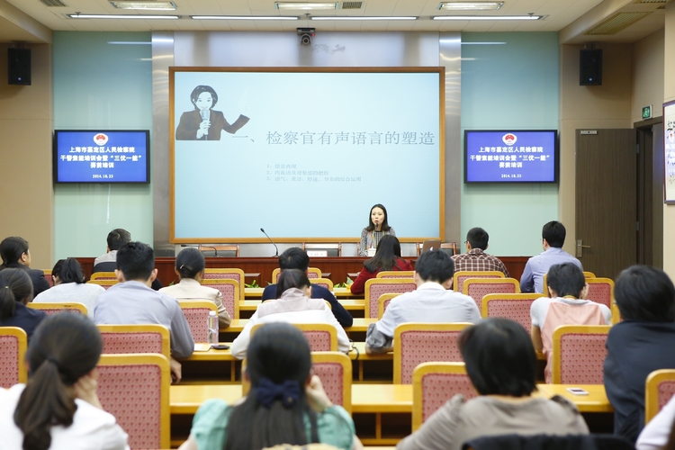 为进一步提升检察干警的综合素质,日前,嘉定区检察院举办“检察官气质形象的养成和口头能力的提升”专题素能培训会,邀请上海师范大学姜杉老师围绕如何提升检察官的口才和气质进行授课。